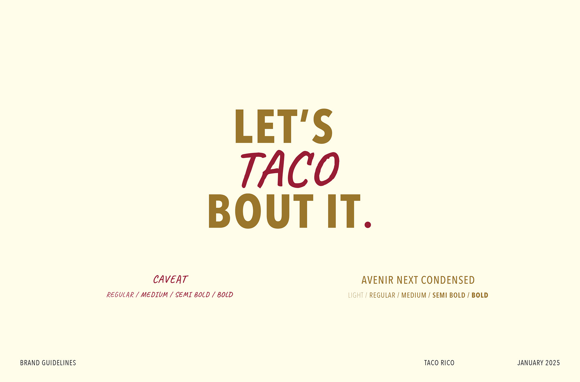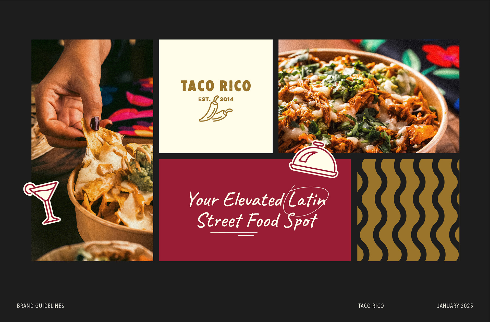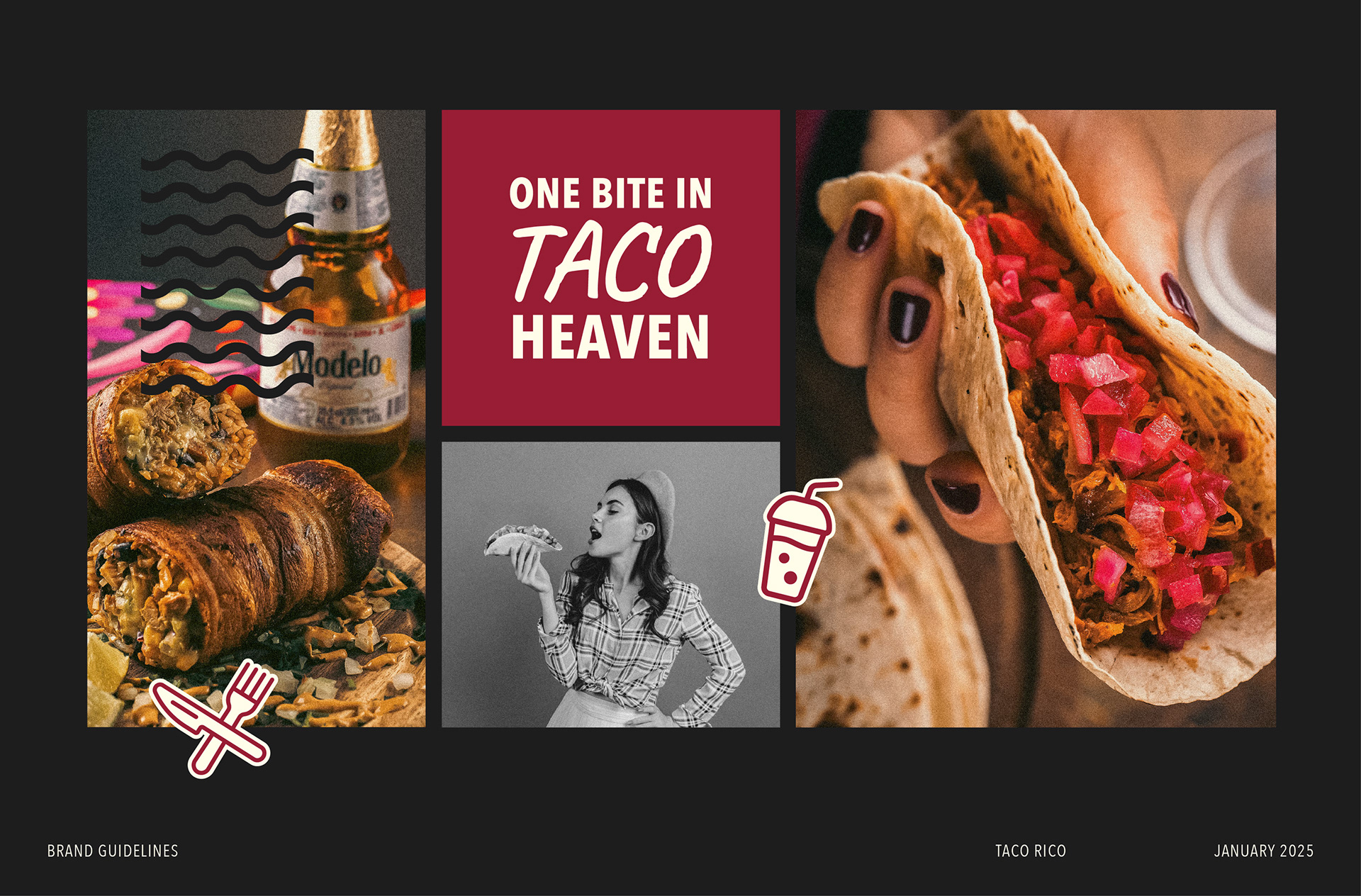 From brand guidelines to social media, from digital to print, I developed this vibrant visual identity for Taco Rico, capturing the brand’s bold flavors, energetic spirit, and playful attitude inspired by authentic Mexican street culture.