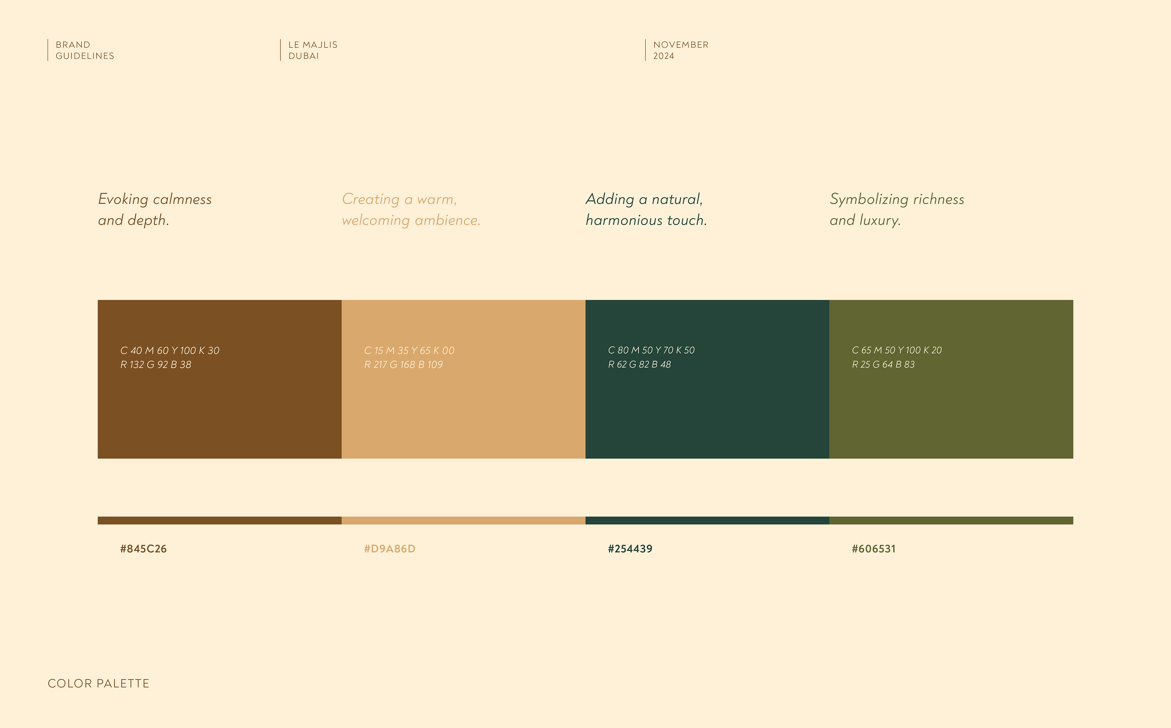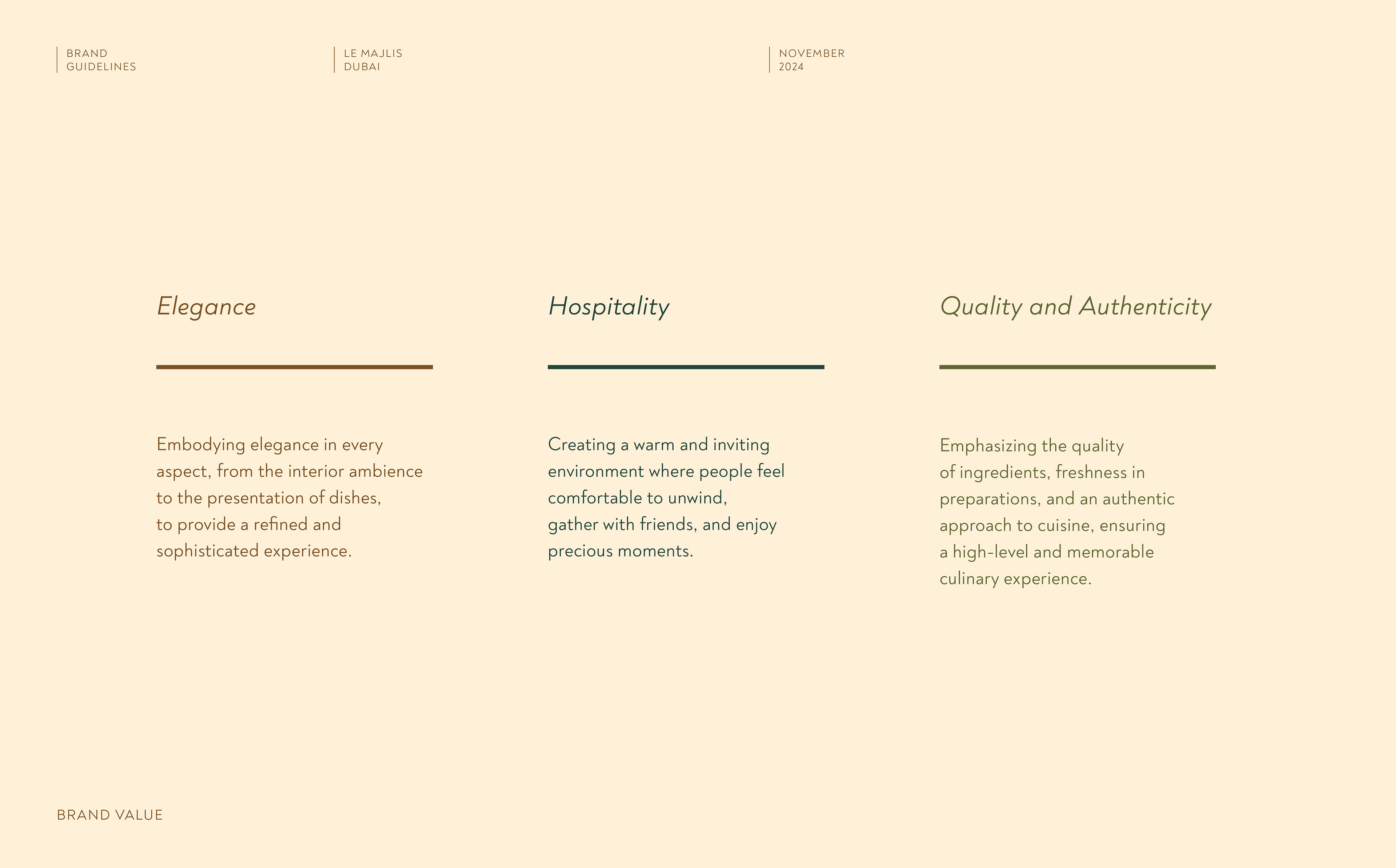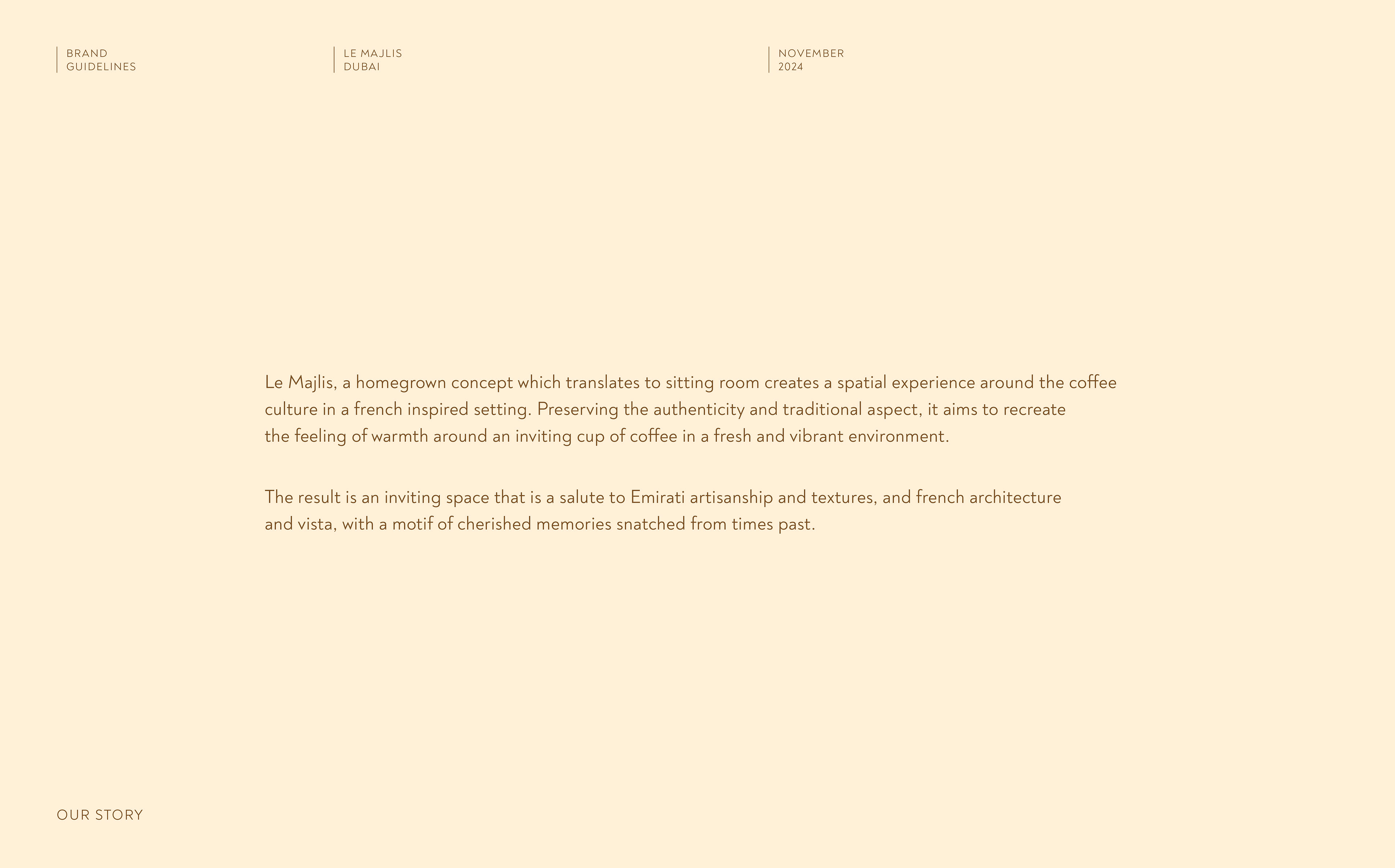 I’m grateful to have shaped Le Majlis from the ground up, developing its logo, brand guidelines, menus, packaging, and social media presence, bringing to life a space that celebrates Emirati hospitality, French culinary finesse, and the art of unhurried, meaningful moments.